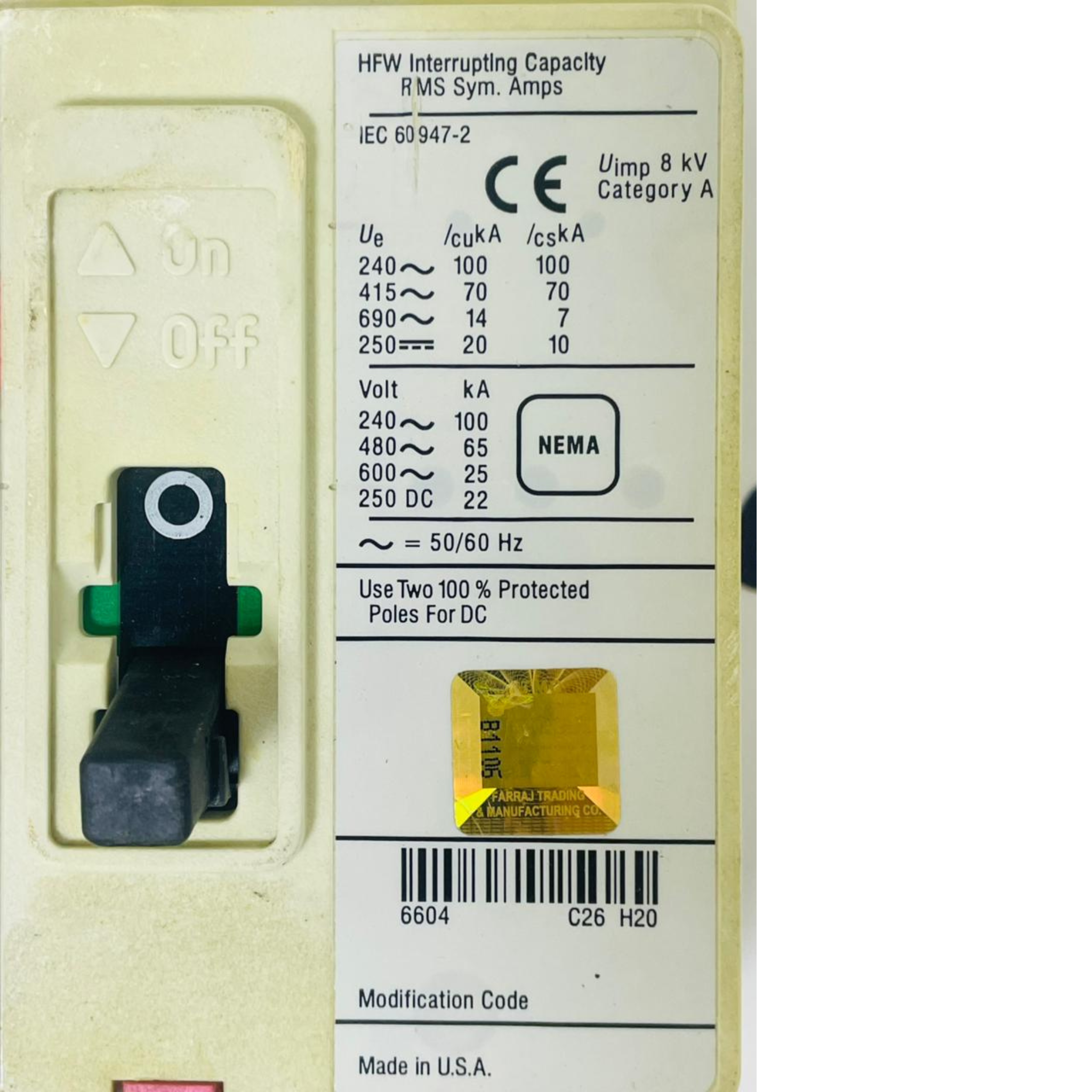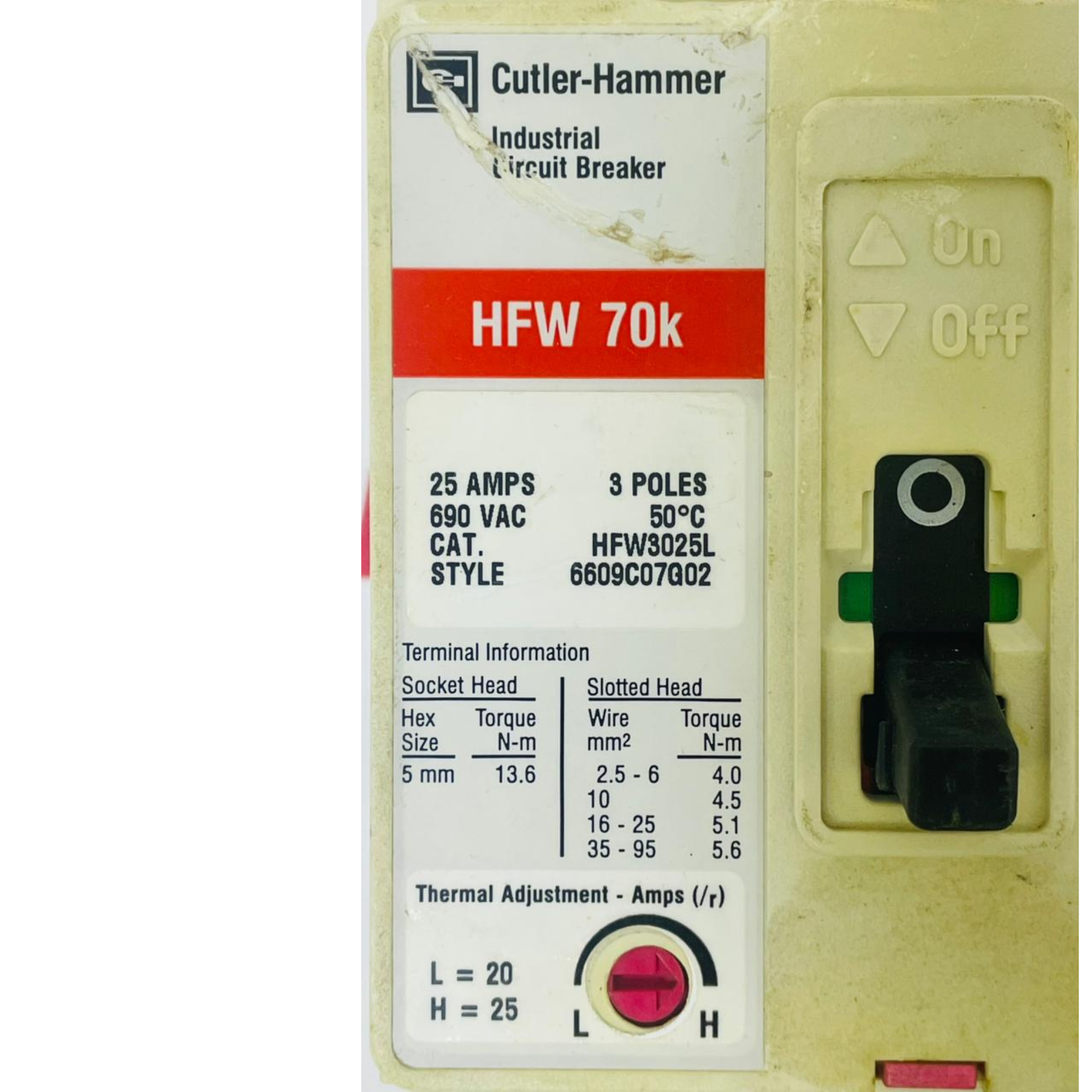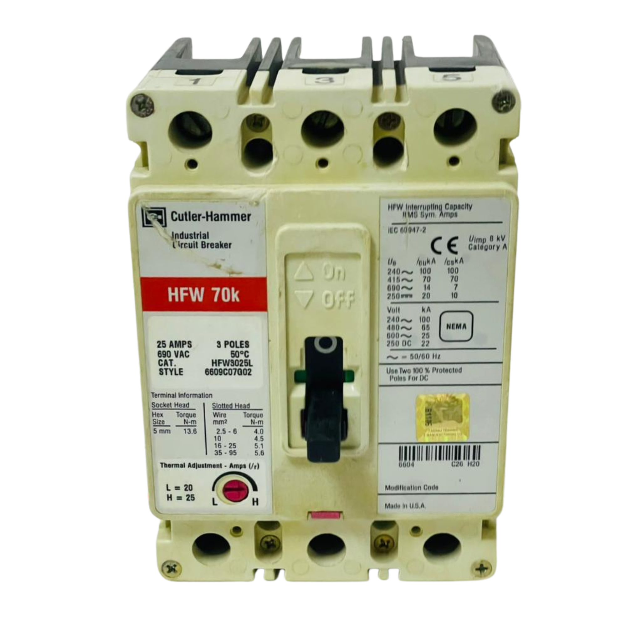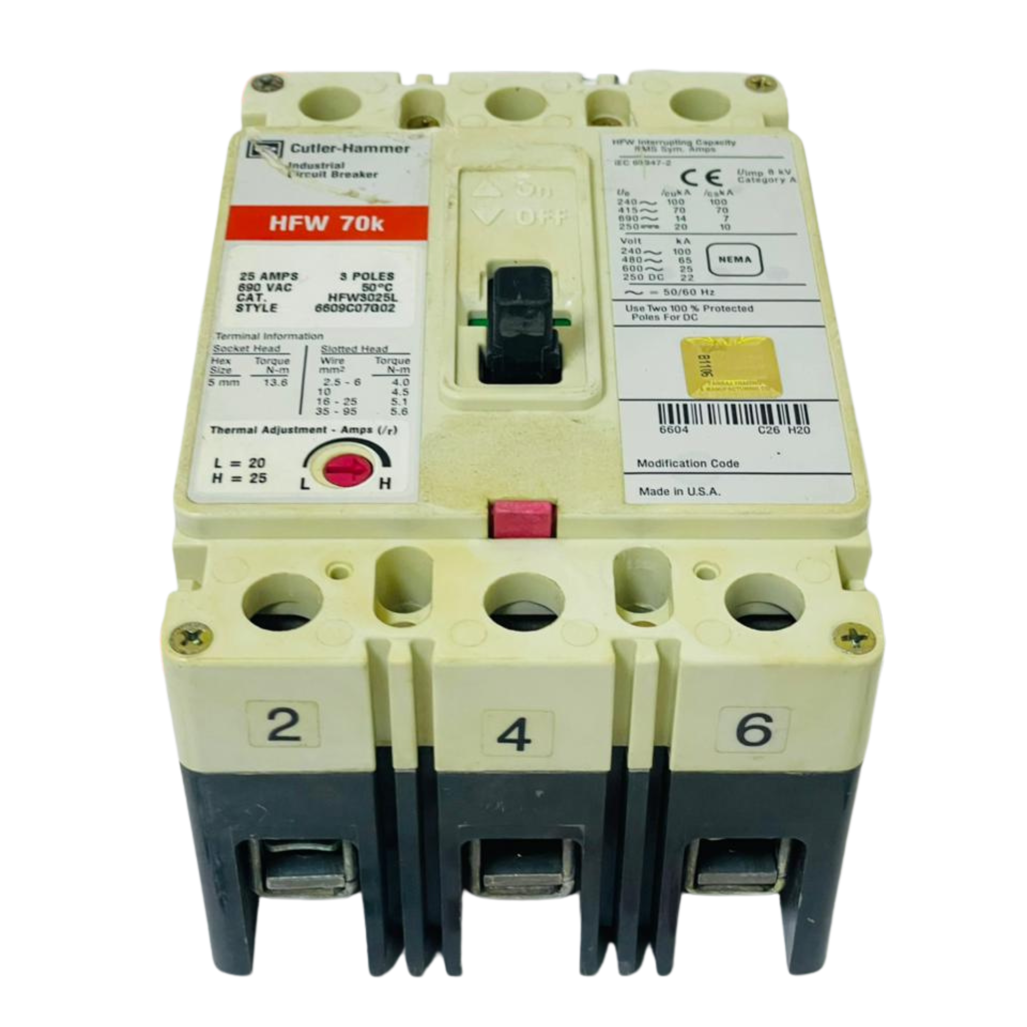 - EATON CUTLER HAMMER HFW3025VL Circuit Breaker 6609C07G02 25A