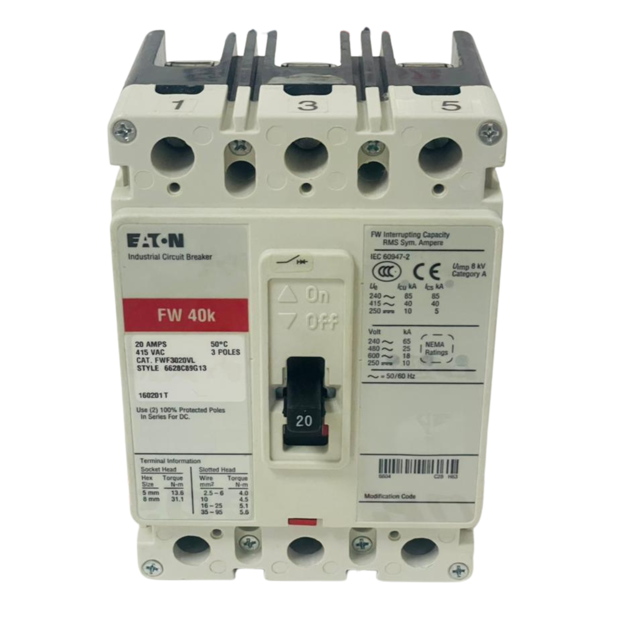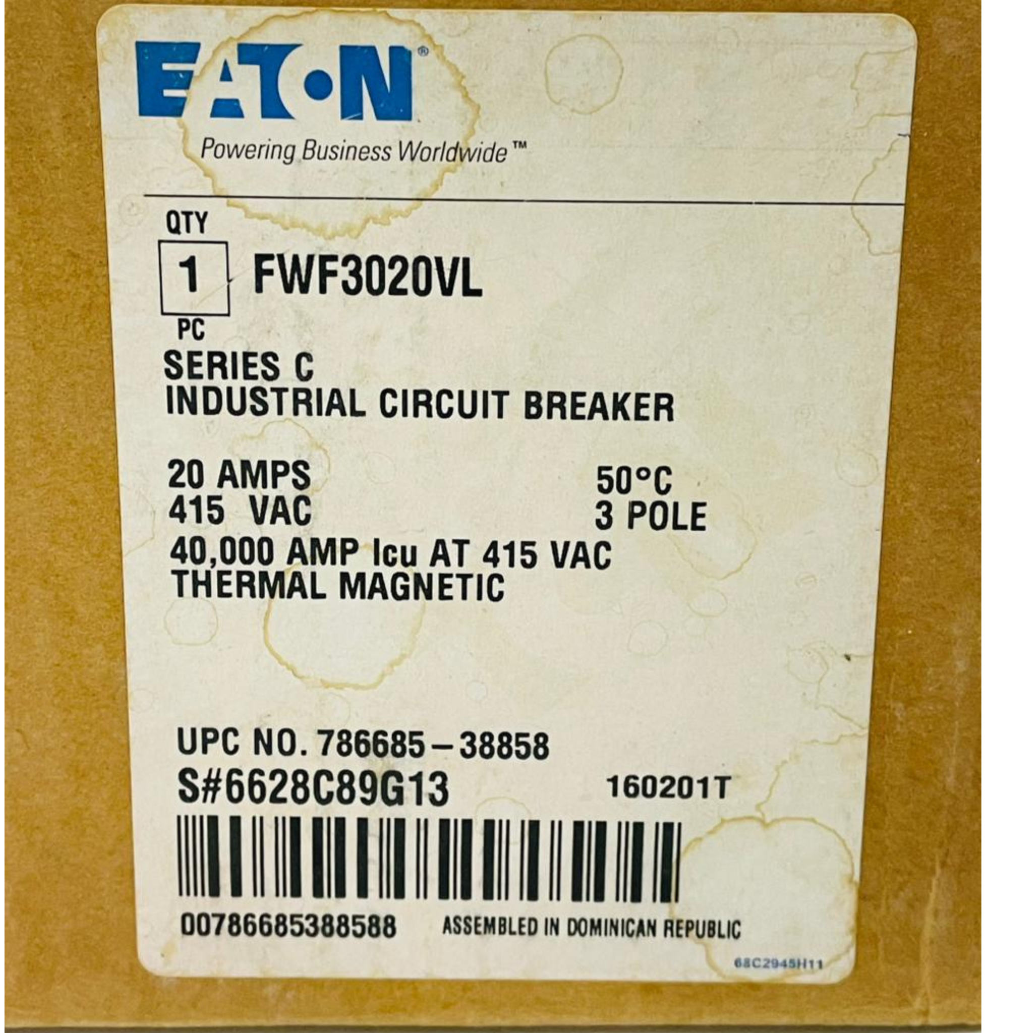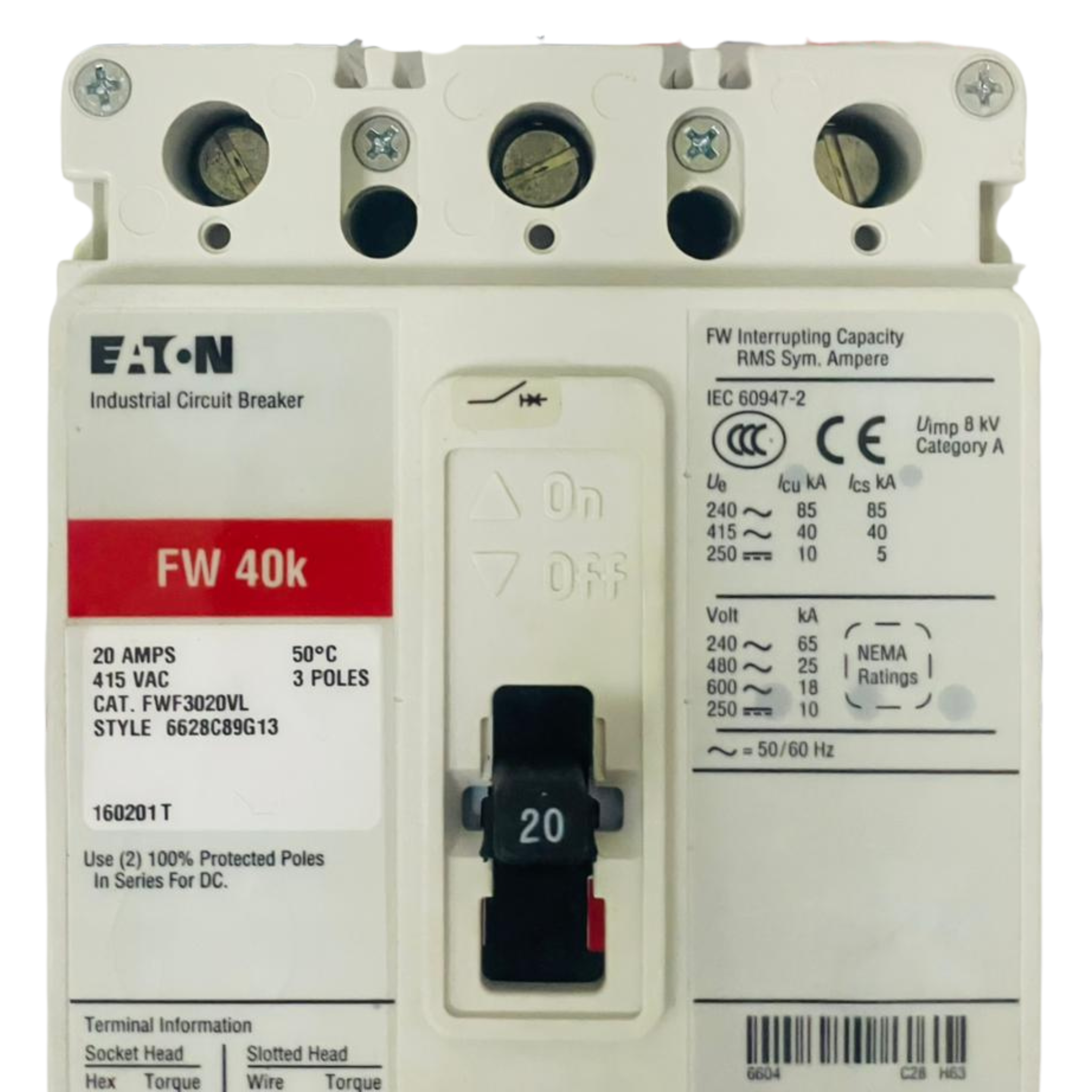 • EATON FW40K Circuit Breaker FWF3020VL 6628C89G13 20A (Used)