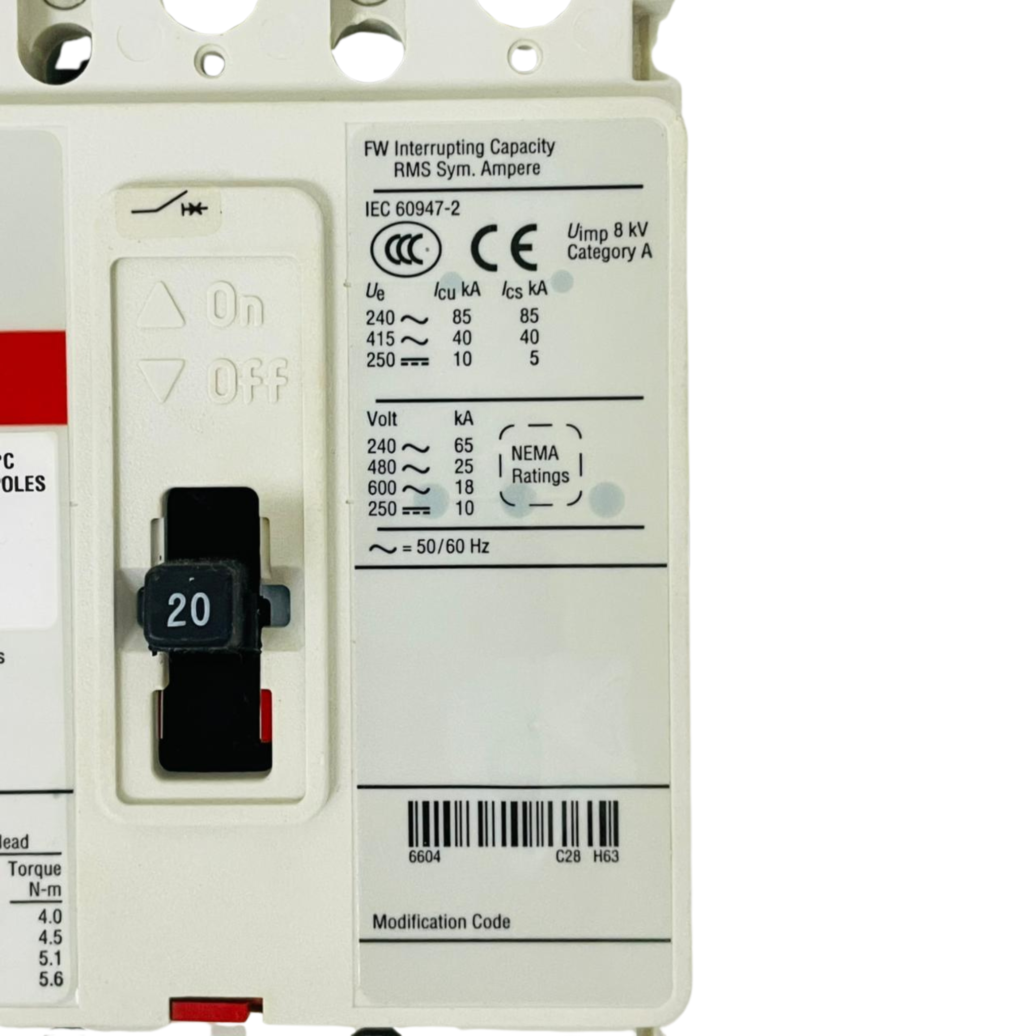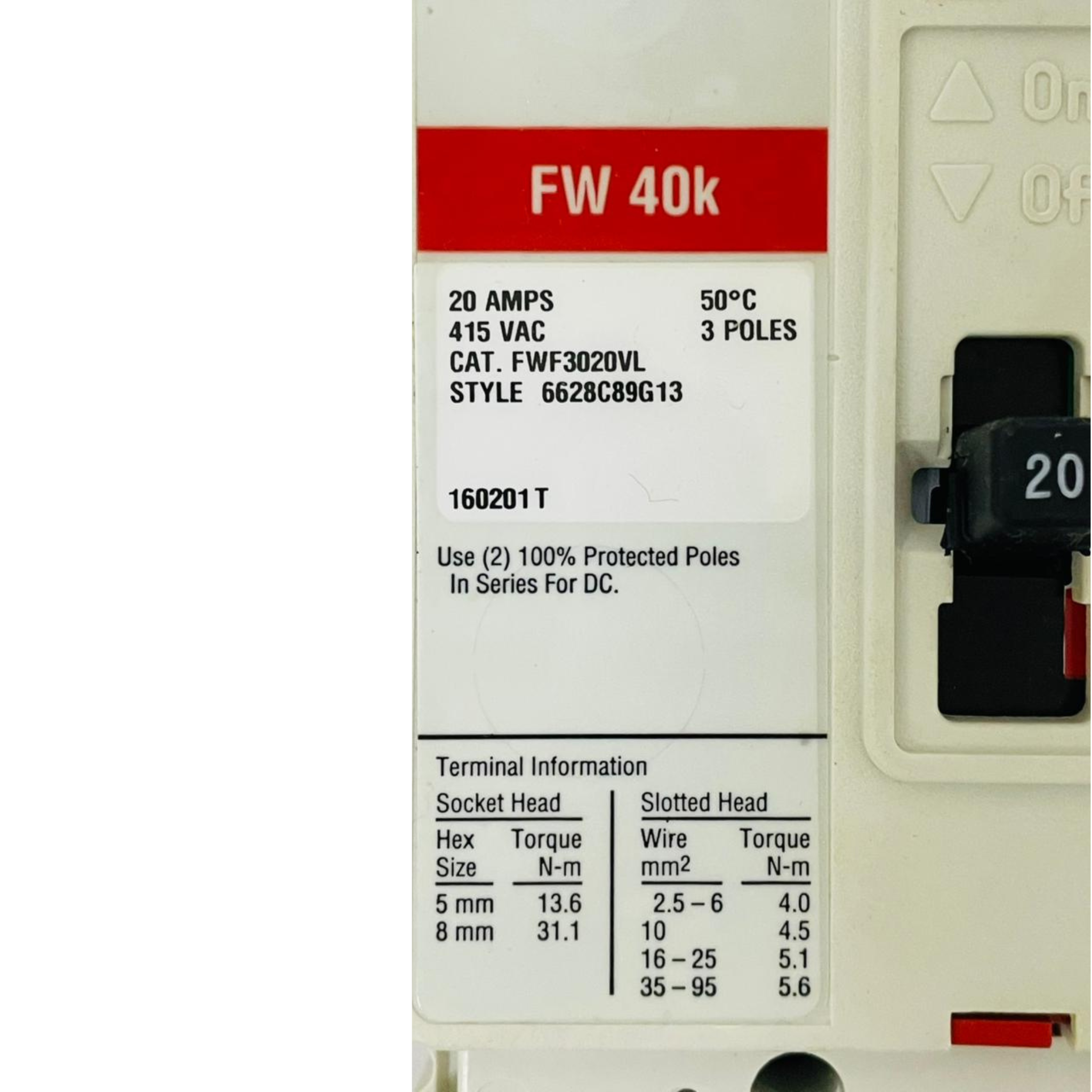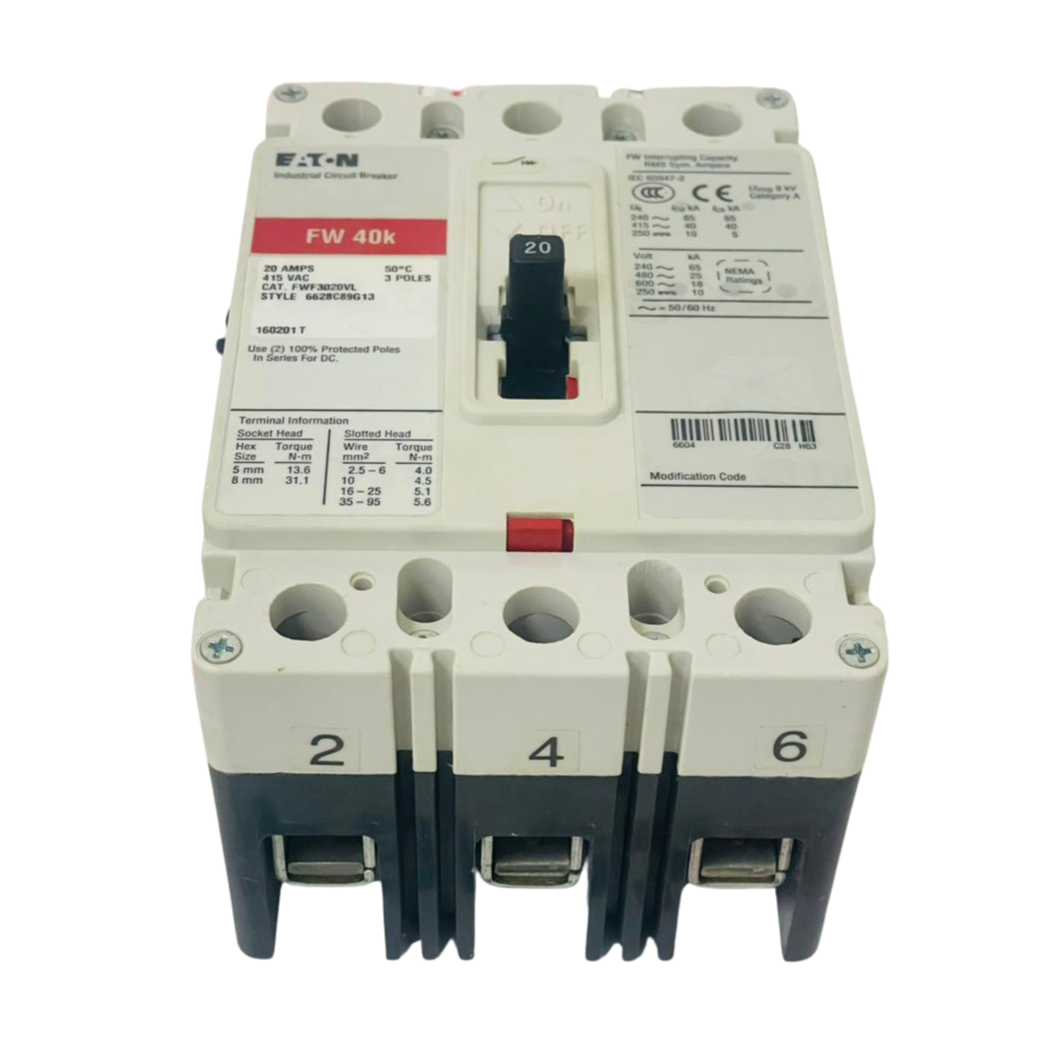 • EATON FW40K Circuit Breaker FWF3020VL 6628C89G13 20A (Used)