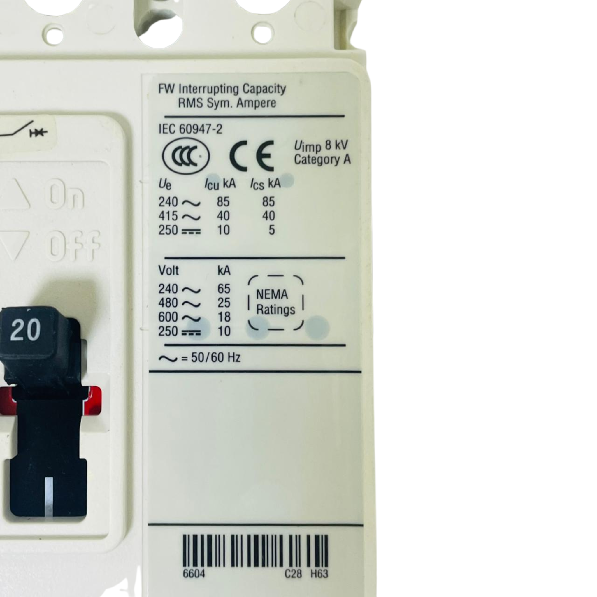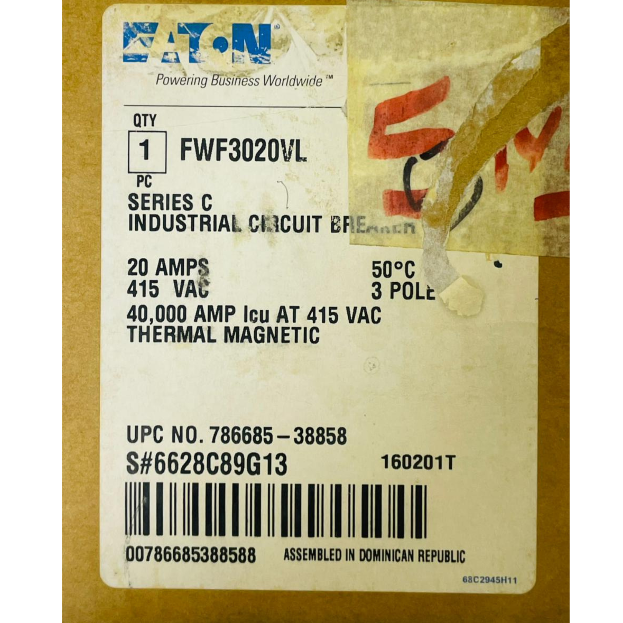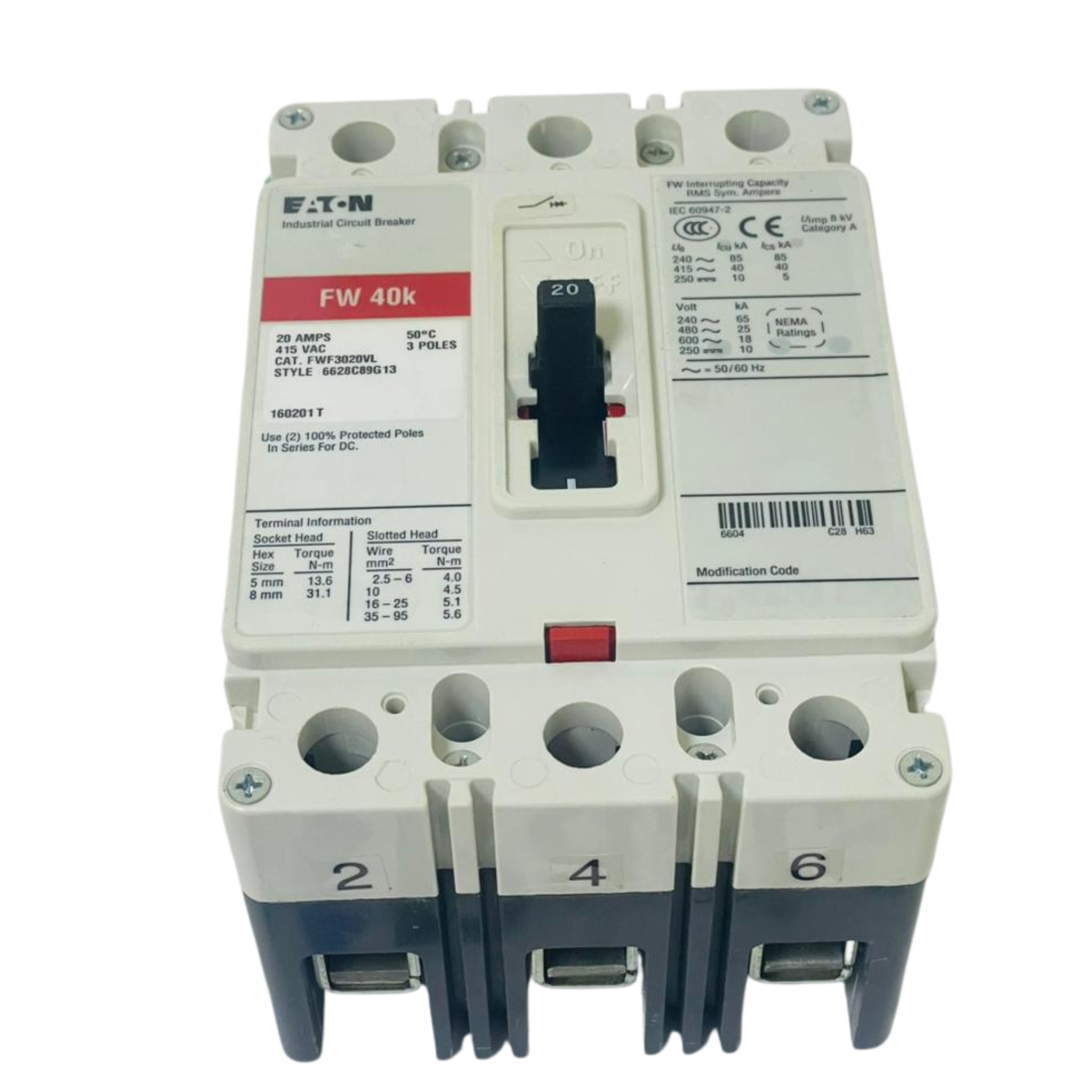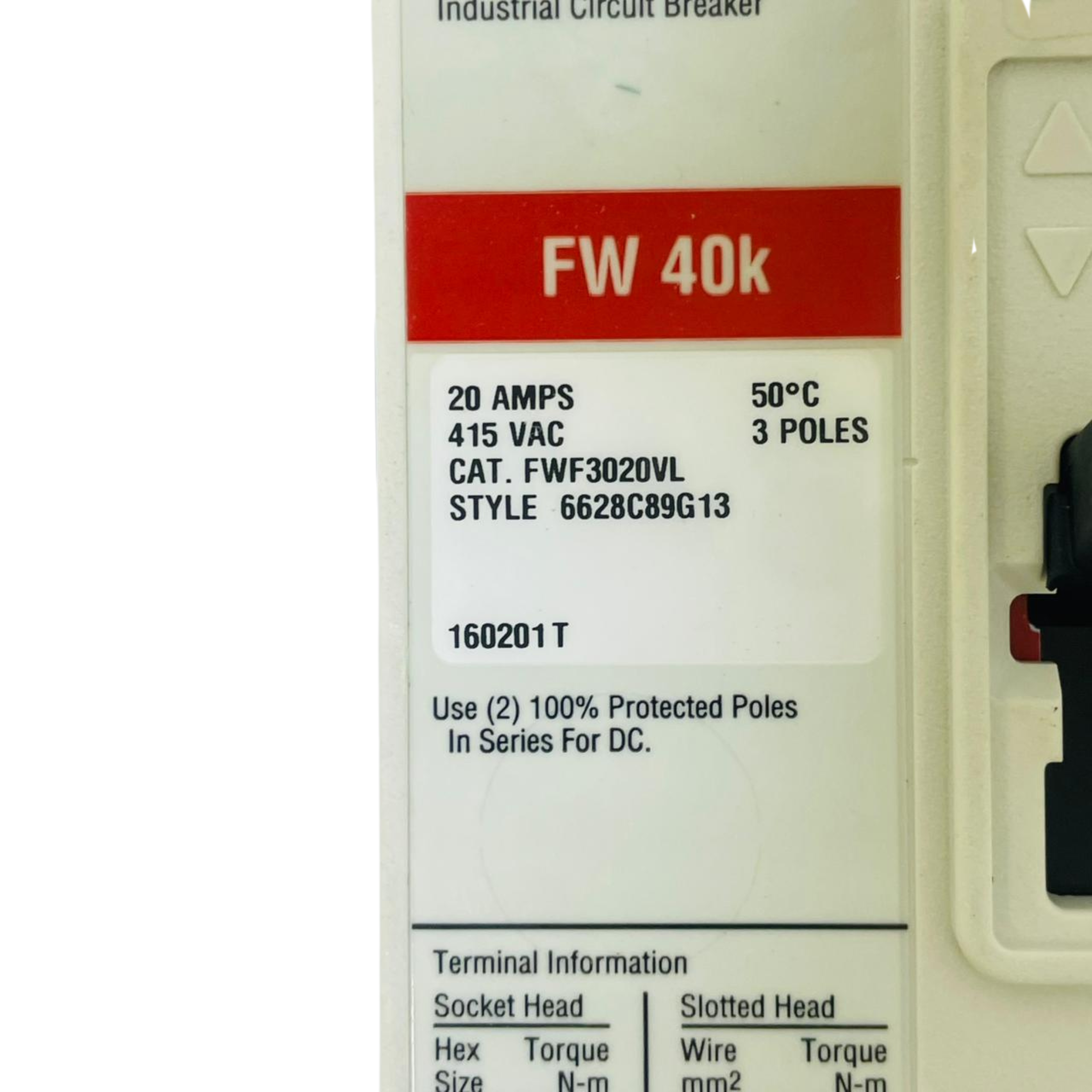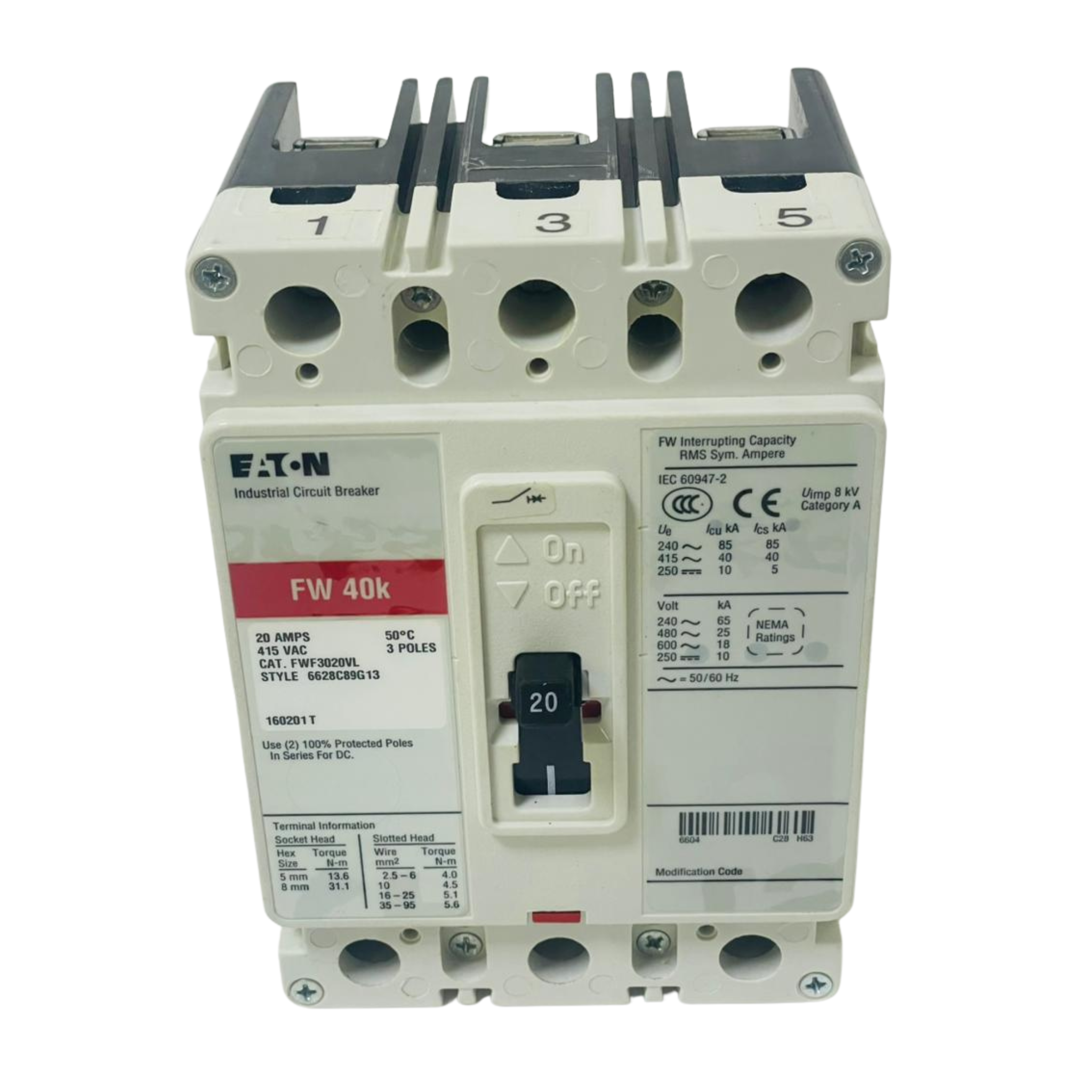 - EATON FW40K Circuit Breaker FWF3020VL 6628C89G13 20A