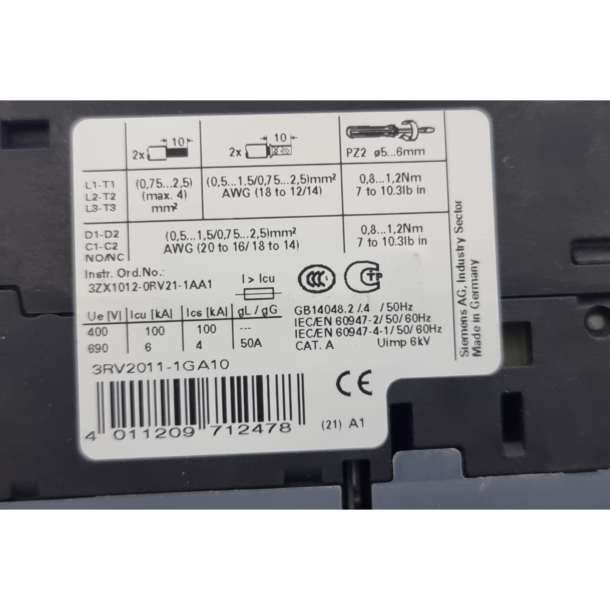 - SIEMENS 3RV2011-1GA10 Motor Protection Circuit Breaker