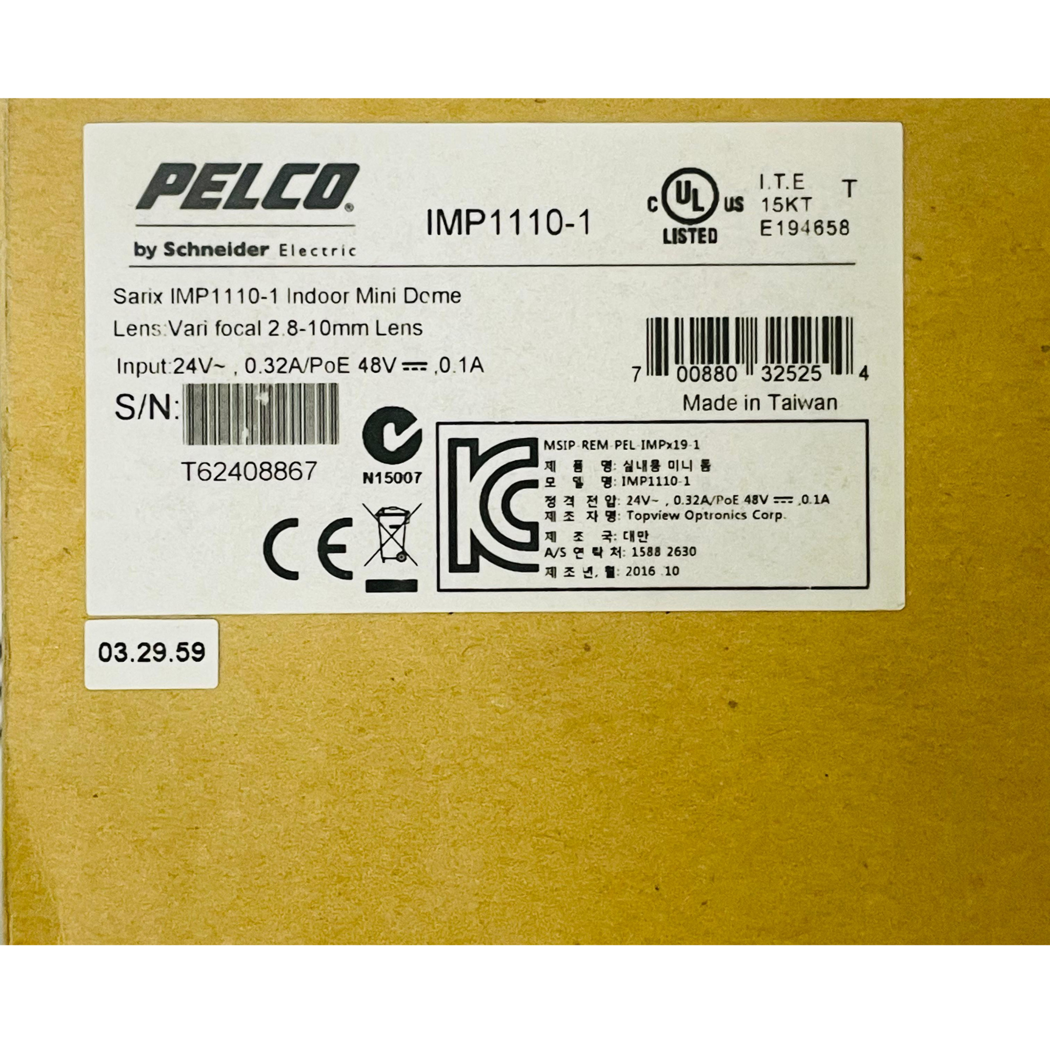 - PELCO IMP1110-1 Indoor Mini Dome Camera